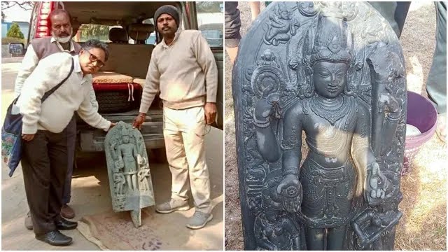 History unearthed: पश्चिम बंगाल के पूर्व वर्धमान जिले के रायना में इतिहास एक बार फिर जीवंत हो उठा है। यहाँ के पलासन गांव में एक पुराने तालाब के जीर्णोद्धार (संस्कार) के दौरान कश्ती पत्थर (Black Stone) से बनी भगवान विष्णु की एक अत्यंत दुर्लभ और प्राचीन मूर्ति मिली है। विशेषज्ञों के अनुसार, यह मूर्ति लगभग 1000 साल पुरानी है और इसका संबंध सेन राजवंश के काल से है।